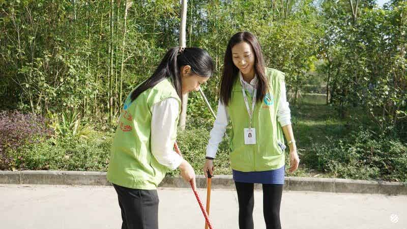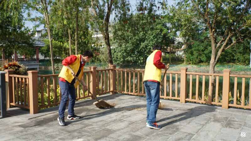 陽光明媚,志愿者一行人拿著清掃工具來到演達公園。志愿者們發揚不怕臟不怕累的精神,認真清掃公園內的落葉、垃圾,連丟棄在花盆里的小小煙頭也不放過。