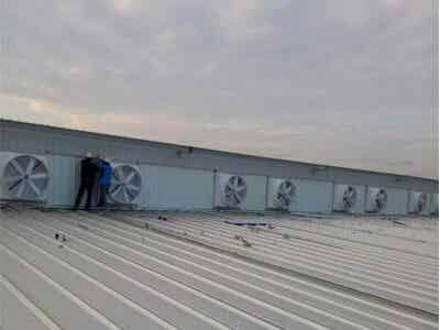 在實際應用中,玻璃鋼負壓風機一般運用在工廠的廠房通風換氣,特別是有酸堿腐蝕性的場所通風換氣,安裝時集中將玻璃鋼負壓風機安裝在室內墻的一側窗戶上,進氣口利用對應在室內的另外一側窗戶或者門,空氣由進氣口到玻璃鋼負壓風機形成對流抽風換氣。在這個過程中,靠近玻璃鋼負壓風機附近的門窗保持關閉,強迫空氣由進氣口一側門窗補償流入室內,空氣由進氣口涌入室內,從室內以一定的風速流過,由玻璃鋼負壓風機安裝的位置排出室外。