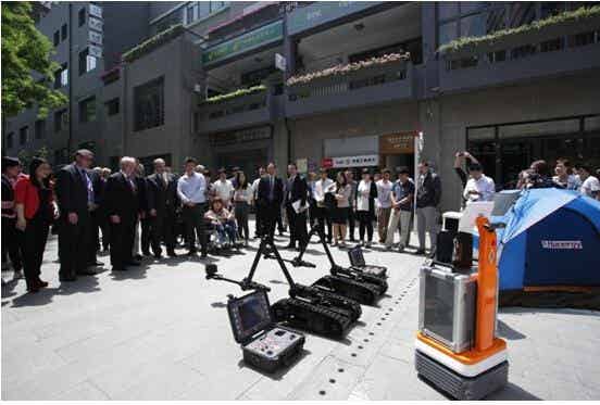 國務院總理李克強現身中關村創業大街,視察中關村創業情況,與創業者暢談就業。在視察過程中,一臺搜救排爆機器人吸引了總理的目光,總理近距離觀察了搜救排爆機器人的工作運行情況,并認真聆聽了設計人員的講解。李克強總理對設計人員說:“你們做了很好的展示,這個創新設計非常好”。