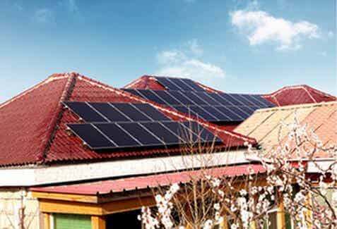 在紅色瓦片的映襯下,姜昆家屋頂上的藍色薄膜太陽能電池板格外醒目。