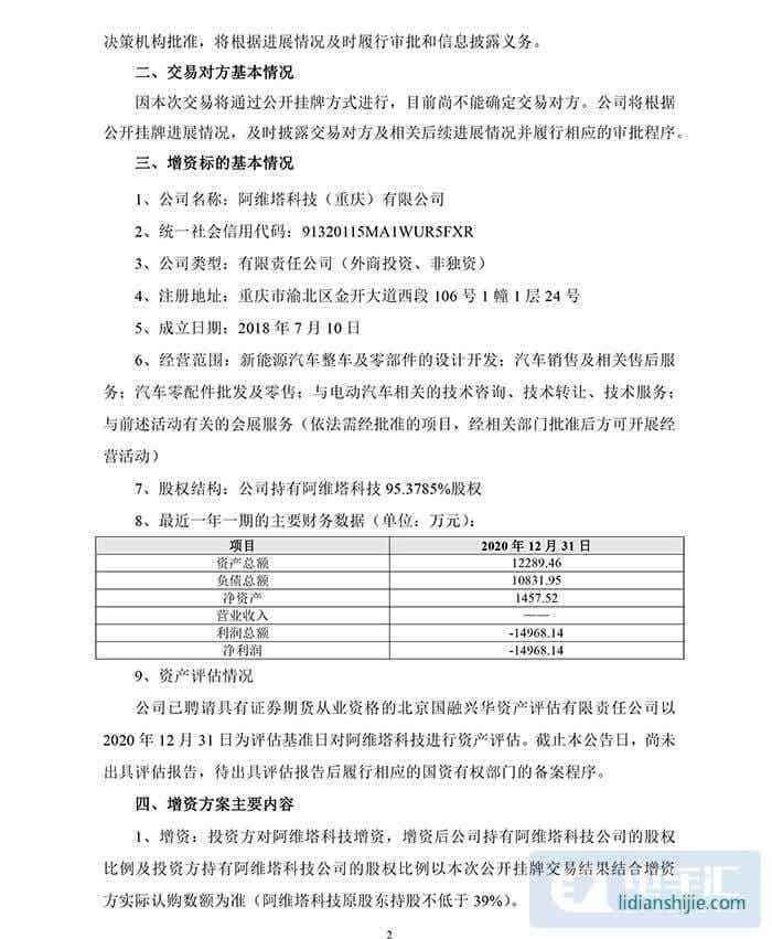 電車匯消息:8月21日,長安汽車公告,旗下阿維塔科技(重慶)有限公司通過公開掛牌增資擴股引入2-5家投資者。
