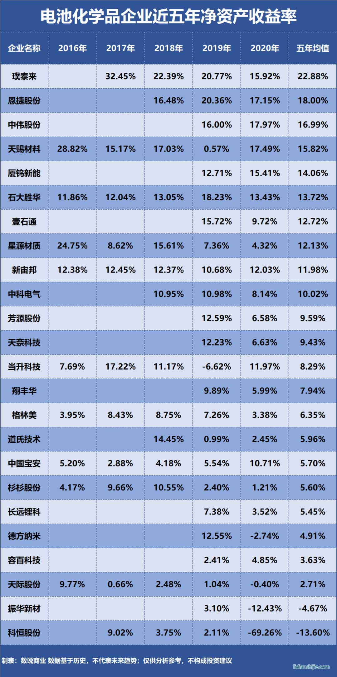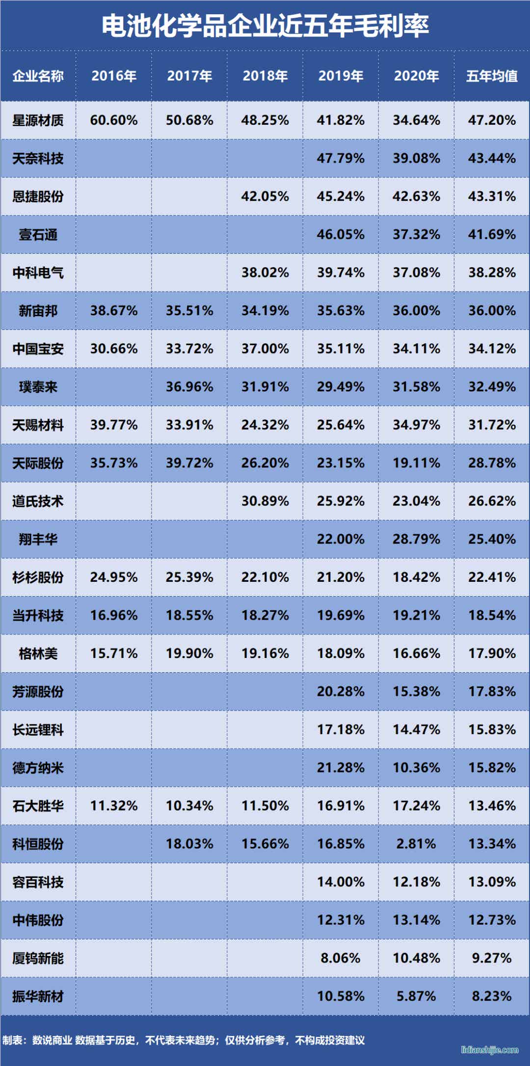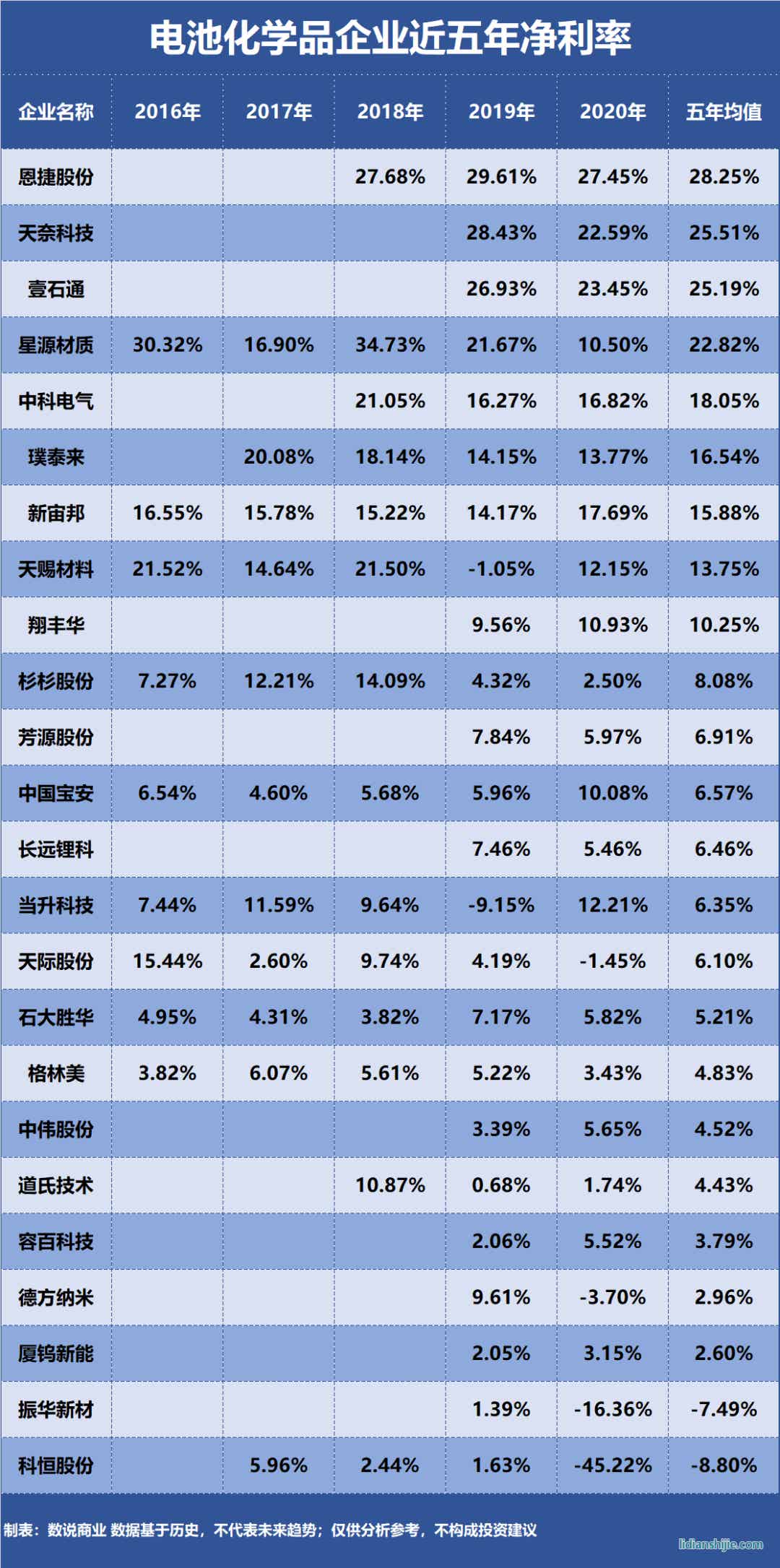 電池化學(xué)品企業(yè)盈利能力排行榜
