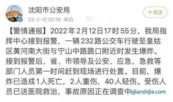 據左右觀車綜合媒體報道,2月12日17時55分,沈陽市公安局指揮中心接到報警,一輛232路公交車行駛至皇姑區黃河南大街與寧山中路路口附近時發生爆炸。遼寧省沈陽市公安局官方微博12日通報稱,接到報警后,省、市領導及公安應急、急救等部門人員第一時間趕到現場進行處置。爆炸已造成1人死亡,2人重傷,40人輕傷,“受傷人員已送醫院救治,事故原因正在調查中。”