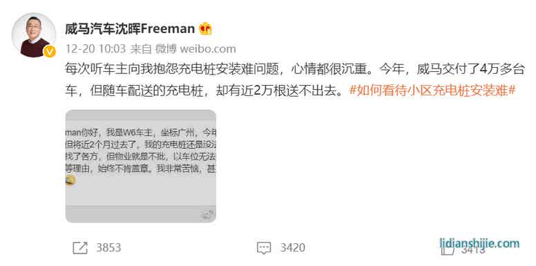 在蔚來NIO Day發布會后兩天,沈暉公開“吐槽”私人充電樁安裝難的問題。那些無法安裝充電樁的威馬車主原本可以選擇晚上回到小區充電,第二天正常出行。現在只能到外面找公共充電樁充電,要么就等上1-2個小時把電充滿,要么就先打車回家。從這個角度講,上述威馬車主就是買了“焦慮”。