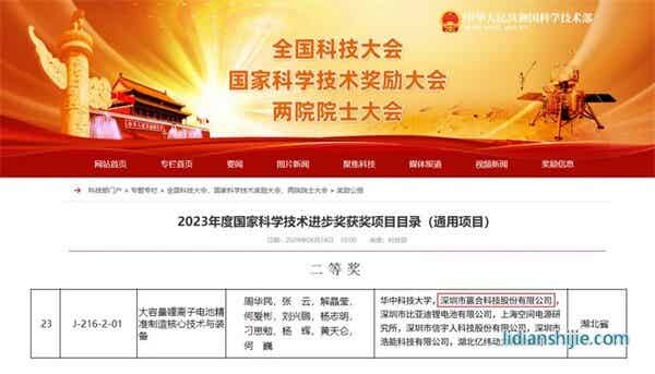 6月24日,全國科技大會、國家科學技術獎勵大會和中國科學院第二十一次院士大會、中國工程院第十七次院士大會在北京人民大會堂召開。贏合科技聯合華中科技大學等單位完成的《大容量鋰離子電池精準制造核心技術與裝備》獲2023年度國家科學技術進步二等獎。