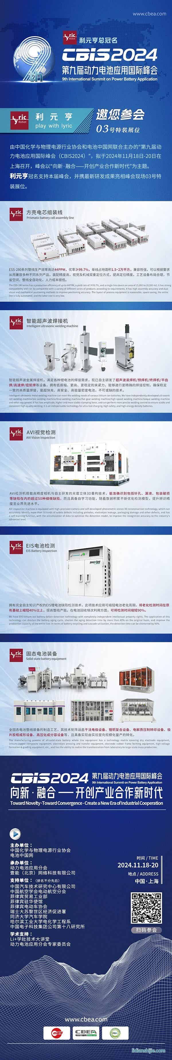 利元亨邀您參加第九屆動力電池應用國際峰會(CBIS2024) 2024-09-10 電池中國網9300 核心提示:利元亨邀您參加第九屆動力電池應用國際峰會(CBIS2024) 利元亨邀您參加第九屆動力電池應用國際峰會(CBIS2024) 點贊 0舉報收藏 0打賞 0評論 0分享 89 更多>同類鋰電資訊 • 億緯鋰能與徐工動力簽署戰略合作協議 • 綠創未來 I 億緯集能、億緯林洋入選國家級綠色 • 億緯鋰能連續7年上榜胡潤中國500強 • 億緯鋰能入選標普全球《可持續發展年鑒》,連續 • 2年12GWh!億緯鋰能與中信博深化儲能戰略合作 • 億緯鋰能儲能研究院(武漢)電力電子實驗室正式 • 全球化首站再升級!億緯鋰能馬來西亞二期廠房落 • 億緯鋰能龍泉實驗室正式投入使用,打造長江經濟 • 億緯鋰能攜手中遠海運,共筑全球供應鏈新生態 • 全球首個628Ah儲能大電池電站成功并網,億緯鋰