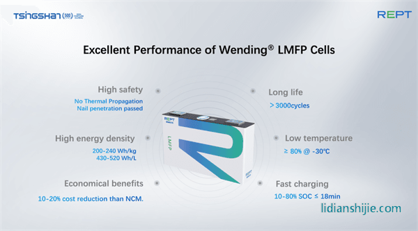 相比LFP與NCM電池,瑞浦蘭鈞推出的LMFP電池綜合了LFP電池和NCM電池的優(yōu)勢性能,疊加瑞浦蘭鈞獨(dú)創(chuàng)的Wending®技術(shù)后,進(jìn)一步提升能量密度、循環(huán)壽命、低溫性能、快充性能、安全性能等。