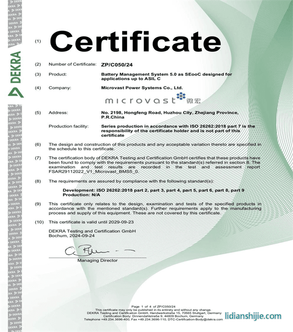 微宏動(dòng)力第五代BMS產(chǎn)品獲DEKRA德凱ISO 26262:2018汽車(chē)功能安全ASIL C產(chǎn)品認(rèn)證證書(shū)