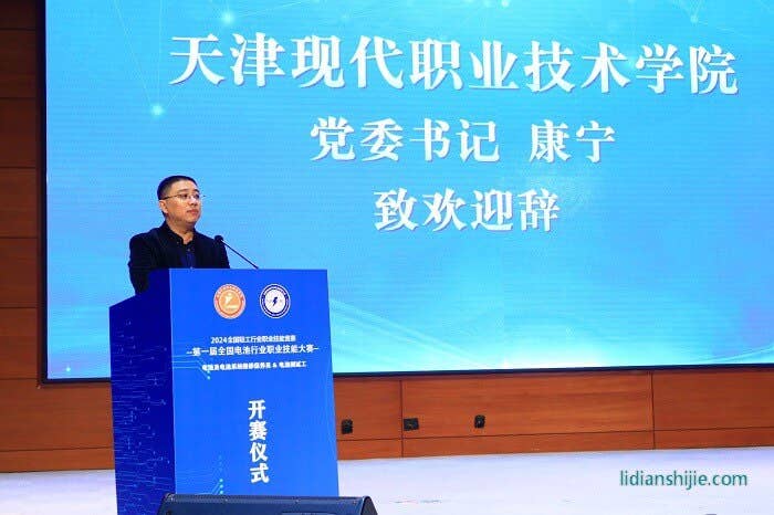 天津現(xiàn)代職業(yè)技術(shù)學(xué)院黨委書記康寧在致辭中對(duì)各位嘉賓的到來表示熱烈歡迎,并強(qiáng)調(diào)學(xué)院深入貫徹落實(shí)習(xí)近平總書記對(duì)技能人才工作的系列重要指示和全國教育大會(huì)精神,大力弘揚(yáng)勞模精神、勞動(dòng)精神、工匠精神,加強(qiáng)儲(chǔ)能材料技術(shù)專業(yè)建設(shè),矢志為中國式現(xiàn)代化培養(yǎng)更多電池行業(yè)大國工匠、能工巧匠和高技能人才。