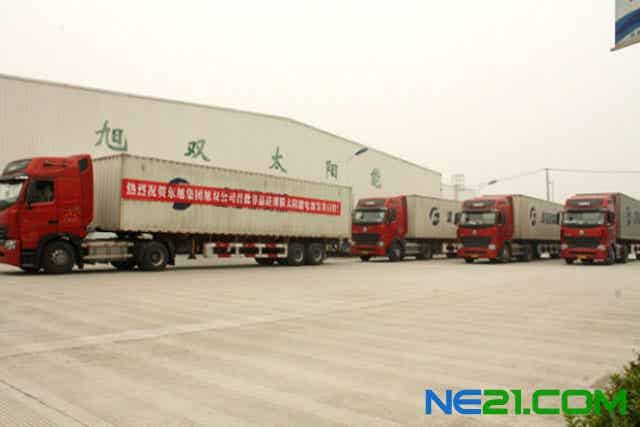 圖:旭雙太陽能首批非晶硅薄膜光伏電池組件成功發貨