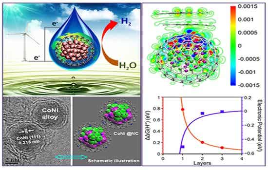 理論模擬和實(shí)驗(yàn)研究表明,在催化反應(yīng)過程中,活性金屬納米粒子催化劑在納米碳空腔中的封裝阻斷了其與苛刻反應(yīng)環(huán)境(如酸性、堿性和強(qiáng)氧化性等)的直接接觸,有效地延緩和阻止了催化劑的失活,同時(shí),被包裹的納米金屬的活性價(jià)電子通過與類石墨烯碳層的相互作用“穿透(penetration)”到外表面,實(shí)現(xiàn)了高效催化反應(yīng)。基于這一原理制備得到的石墨烯碳層封裝的納米鈷-鎳催化劑應(yīng)用于強(qiáng)酸性條件下電解水制氫反應(yīng)(HER),表現(xiàn)出了優(yōu)異的催化活性和穩(wěn)定性,在電流密度為10 mA/cm2 的條件下,電解水陰極過電位僅為142 mV,性能接近于通常采用的40%Pt/C催化劑,相關(guān)結(jié)果于近日在《德國應(yīng)用化學(xué)》(Angew. Chem. Int. Ed., 2015, DOI: 10.1002/anie.201409524)在線發(fā)表,并被該期刊選為“熱點(diǎn)文章(Hot Paper)”。