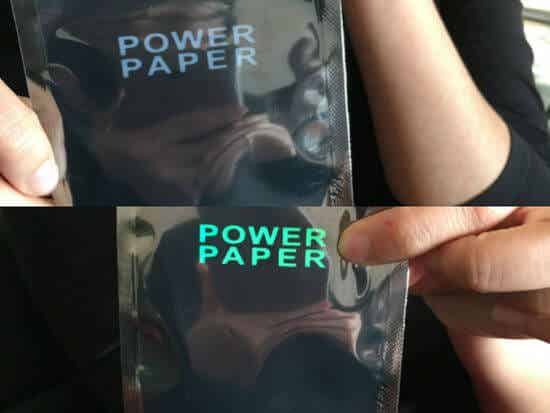 同理,產品包裝內側附著 Power Paper紙電池,在某些交互動作(如撕開、擠壓)發生時,它會呈現真偽識別信息,這也是Power Paper的應用潛力。與廠商合作還能開發更多意想不到的應用。
