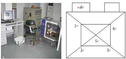 圖11為電池熱箱試驗(150℃/30min)的連接及溫度采集點位置布局圖。圖12為電池熱箱過程中電池電壓、溫度的變化測試曲線圖。